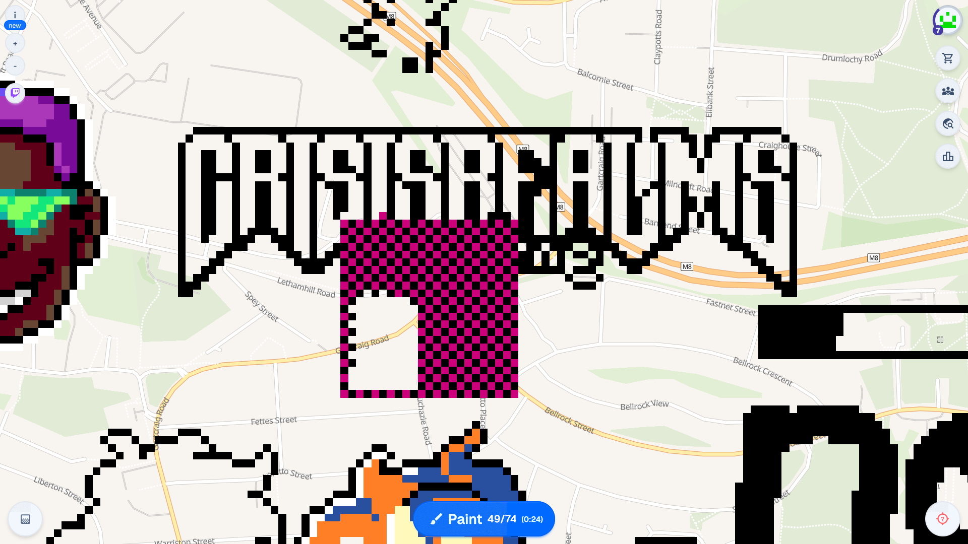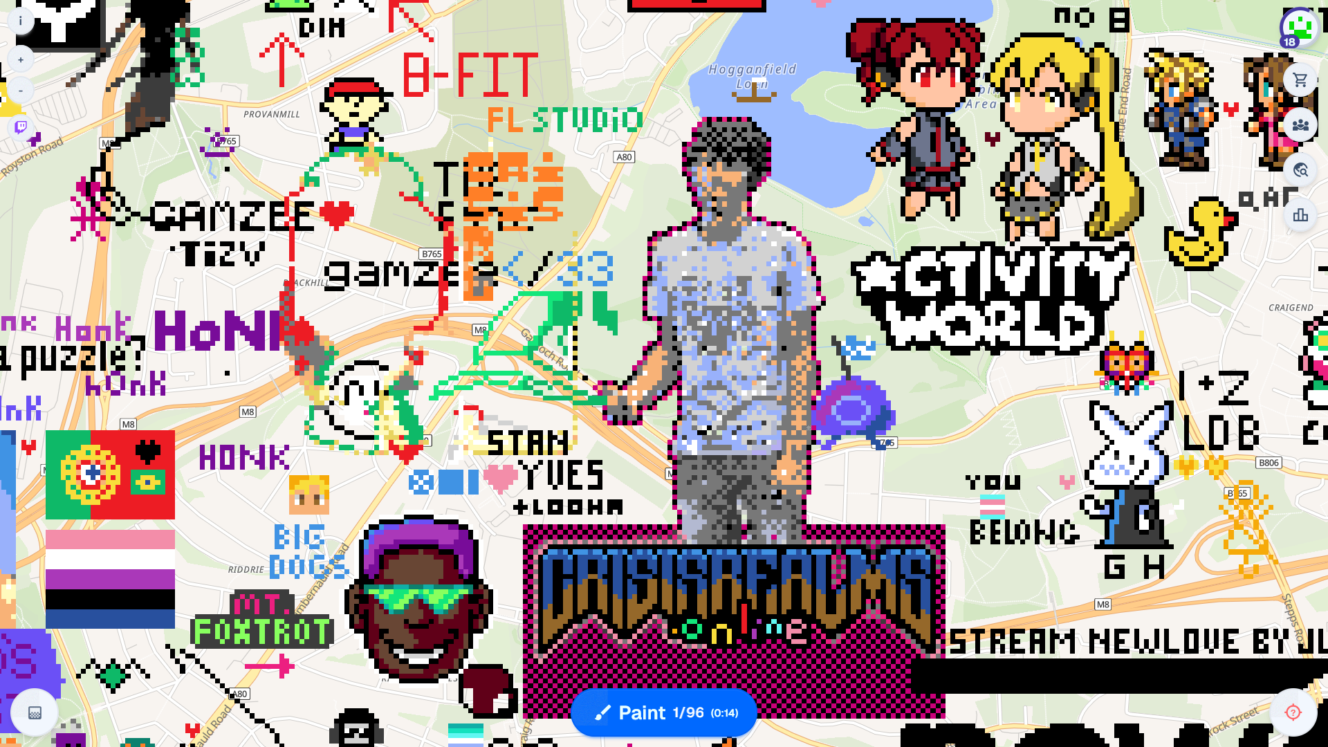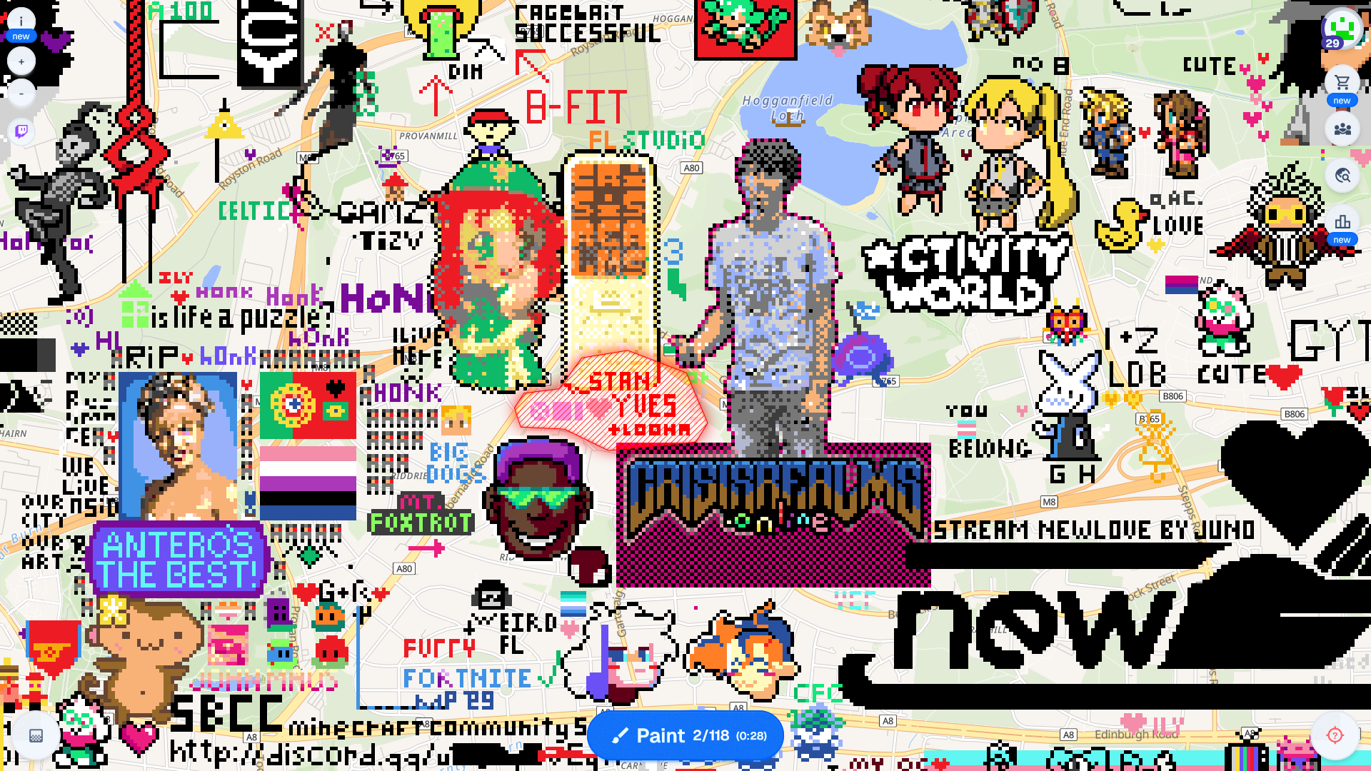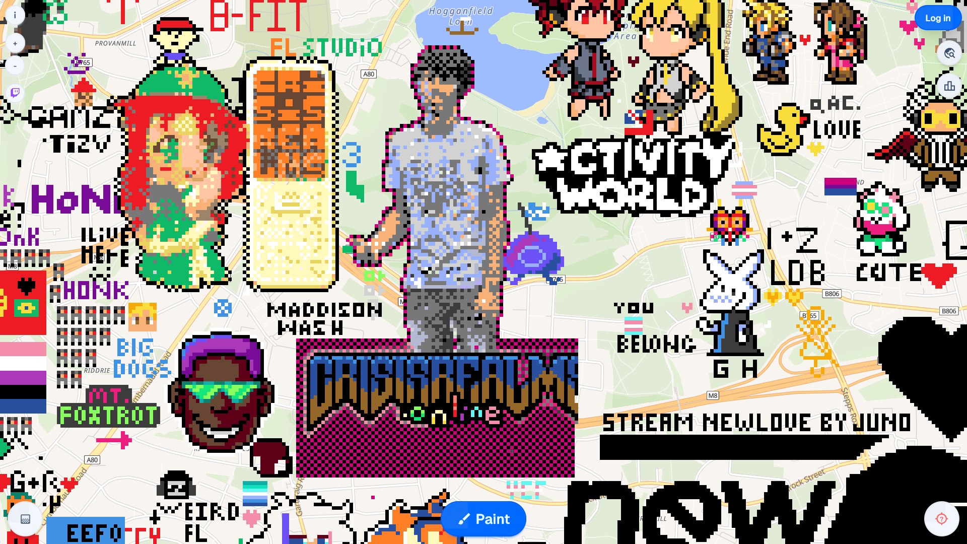 from: Anonymous@202 I DONT KNOW HOW TO GET COORDS. GLASGOW CENTRAL. EAST OF HOMESTUCK. IMMEDIATELY WEST OF BABYTRON. GODSPEED.